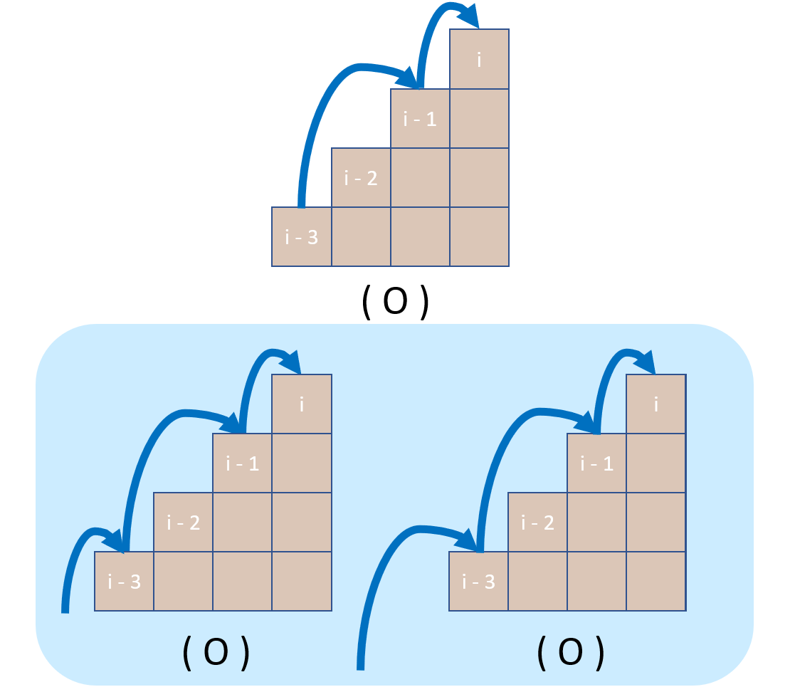 즉, i번째 계단의 최대 누적 점수를 구하기 위해서 우리는 무조건 i - 1번째 계단이나 i - 2번째 계단을 이용해야 한다.