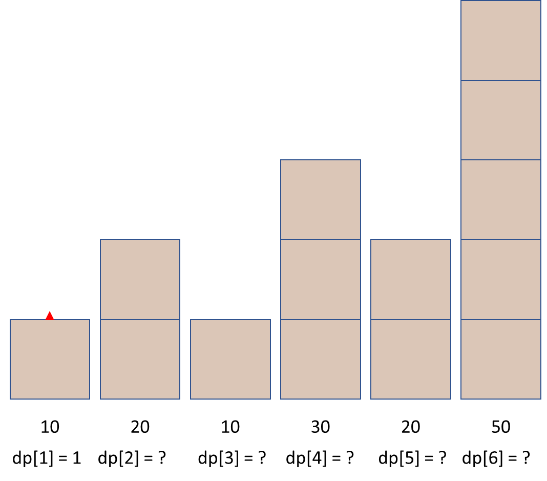 일단 i번째 이전에 수가 없거나 모든 수가 arr[i]보다 큰 경우에 dp[i] 수열이 arr[i]만 가지므로 dp[i] = 1이 된다.